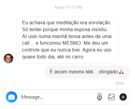 Não sou um especialista distante; estive exatamente onde você está. Vivi a pressão do mundo corporativo e o caos do empreendedorismo na pele. Senti a mente acelerada, o estresse constante, a dificuldade de encontrar um respiro. Criei o Método Meditação 1 em 7 a partir da minha própria necessidade de uma solução prática e eficaz que funcionasse no meio da correria, algo que eu mesmo uso todos os dias.