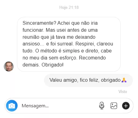 Em apenas uma hora e meia, você absorve todo o conteúdo do curso e já está pronto para colocar em prática. Com técnicas de Respiração Consciente, Visualização Positiva e Escaneamento Corporal, você terá ferramentas para transformar sua vida de maneira prática e rápida. E o melhor de tudo? Você pode fazer isso onde quer que esteja.