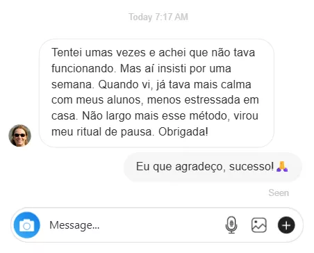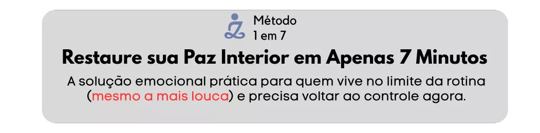Tudo isso em apenas 7 MINUTOS. Um tempo que você tem. E o melhor: você pode usar essa ferramenta quantas vezes precisar ao longo do seu dia, sempre que sentir a 'maré subir".